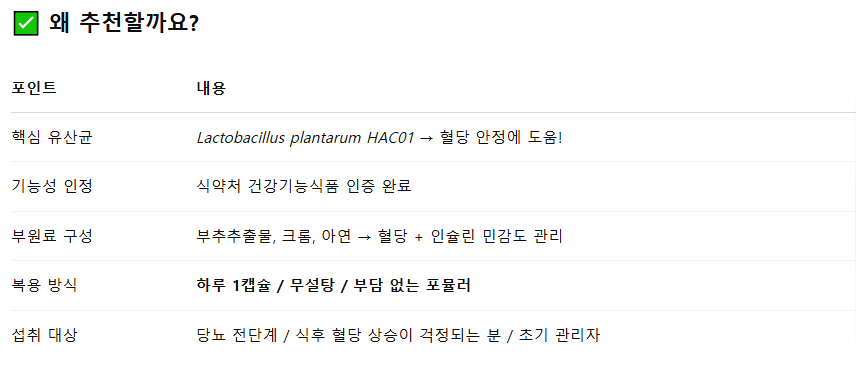 ✔️ 유산균이 장 건강뿐만 아니라 당 흡수 속도, 인슐린 반응성까지 개선하는 기능이 입증되고 있어요.